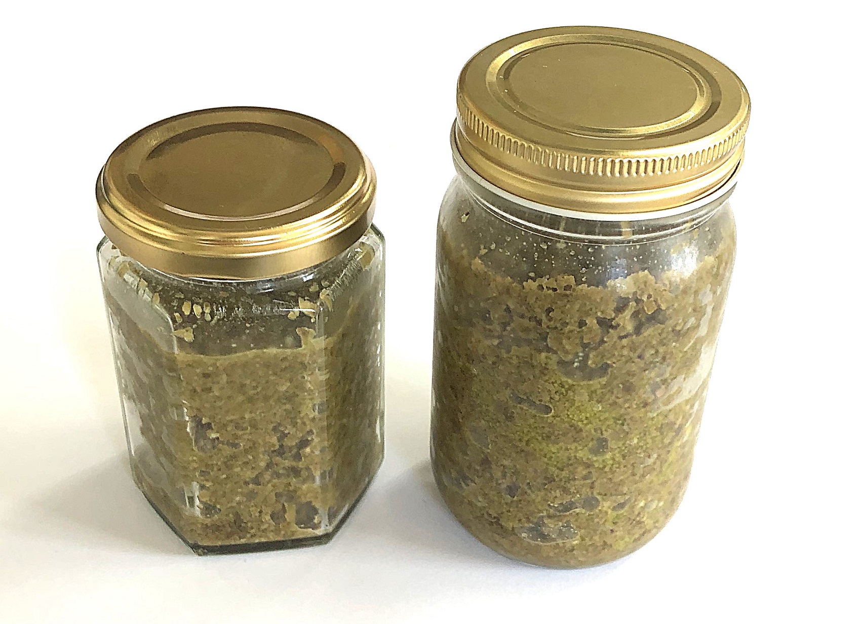 100g(写真左)と180g。加熱しているので冷蔵保存で1カ月は持ちます。開封後はお早めにどうぞ