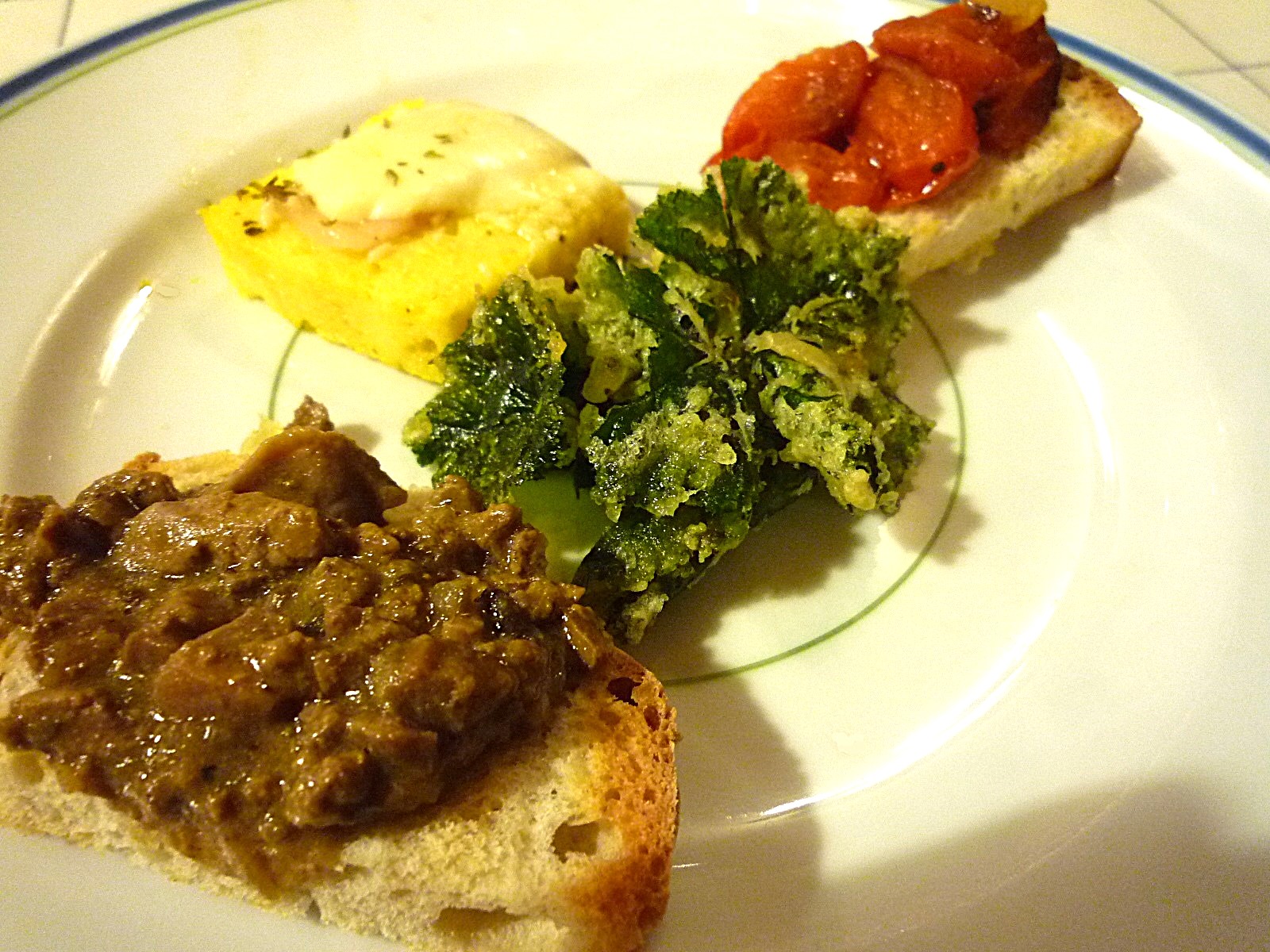 オリーブオイルレシピ。黄色の一品がトウモロコシ粉から作るポレンタ。北イタリアの代表メニューです